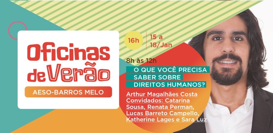 Para exercer plenamente a cidadania é preciso conhecer os direitos que se apresentam no País.  Com o objetivo de expandir a discussão para além das turmas de Direito, as Faculdades Integradas Barros Melo (AESO) oferecem o minicurso O que você precisa saber sobre Direitos Humanos?, com o professor Arthur Magalhães, dentro da programação das Oficinas de Verão da instituição. Os encontros acontecem de 15 a 18 de janeiro, das 8h às 12h, na sede da faculdade.